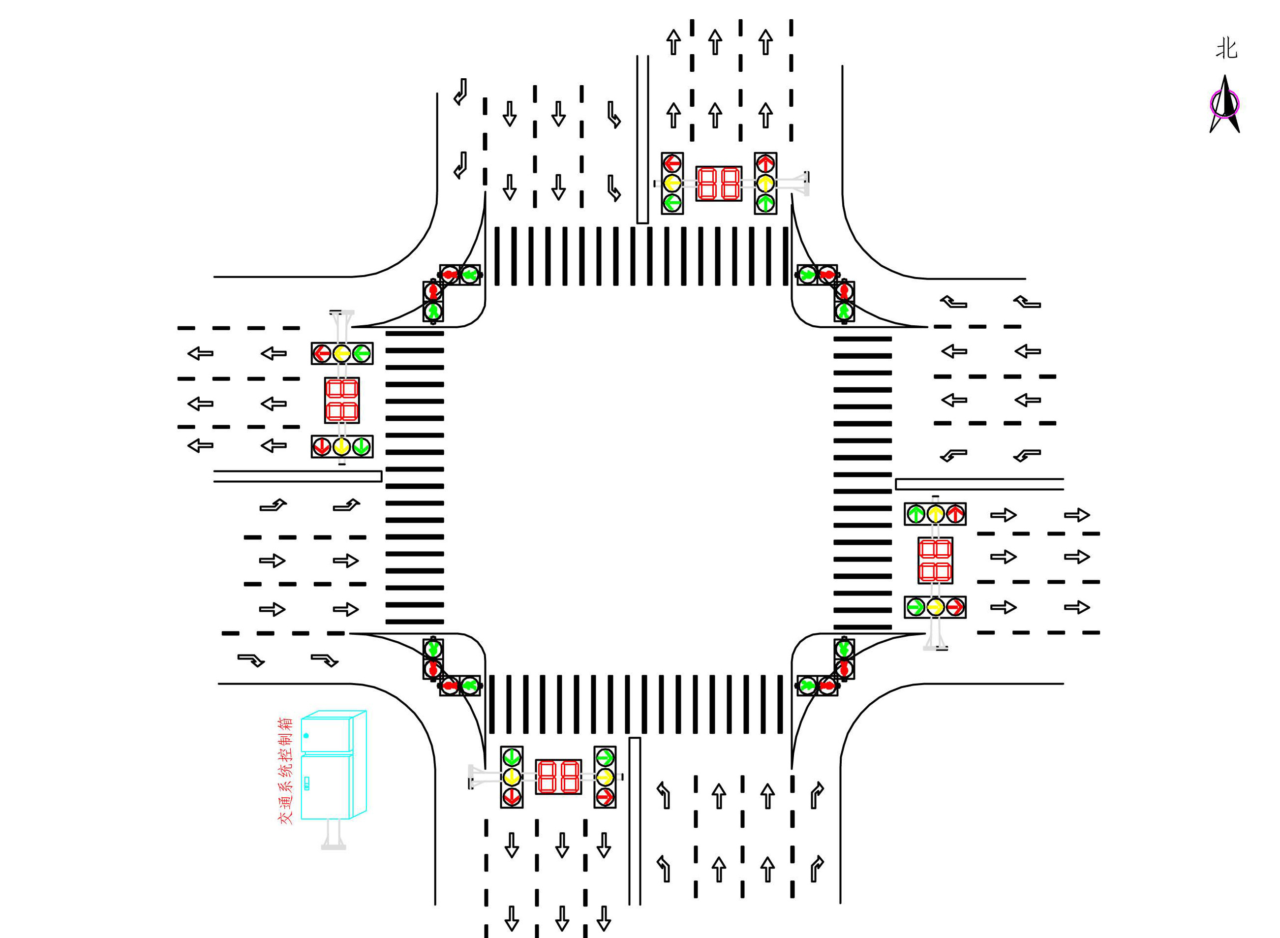 江蘇順泰交通科技公司生產(chǎn)的 智能交通信號燈 控制常用四相位方式放行,在第一相位允許東西方向直行車輛通行,第二相位允許東西方向左轉(zhuǎn)車輛通行,第三相位南北方向汽行車 ...